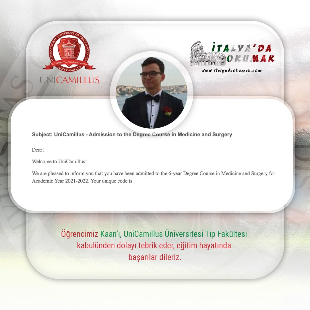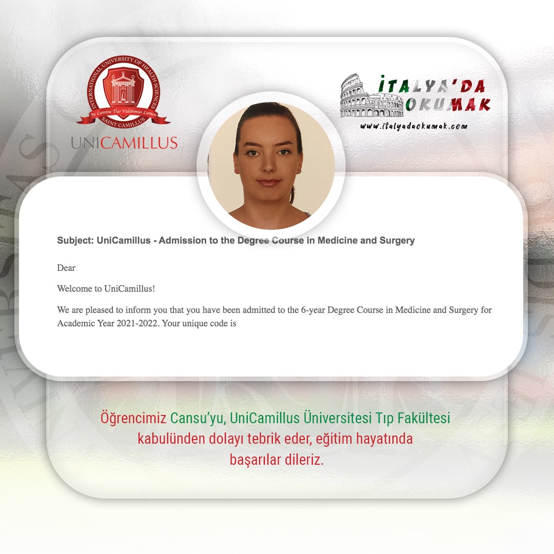 - İtalyanca eğitim almak isteyen uluslararası öğrenciler için de İtalyanca tıp okuma imkanı bulunmaktadır. Bunun için IMAT benzeri İtalyanca bir sınava girmeniz gerekmektedir.